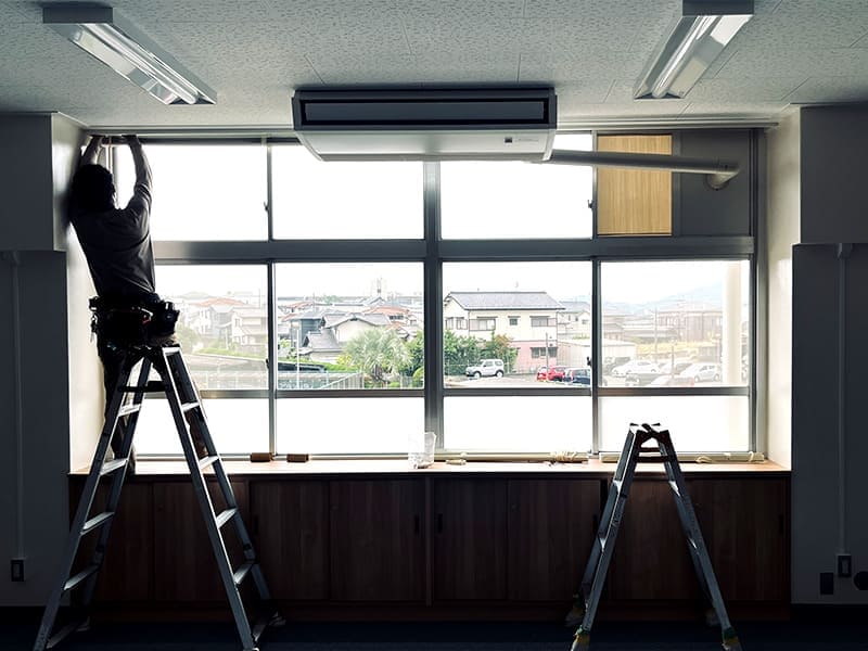 東京に本社のある企業様より「福岡支店の窓が大きく熱いのでどうにかしてほしい」とのご依頼。 オンライン(Zoom)にて、東京本社様、福岡支店様と弊社でお打ち合わせ。