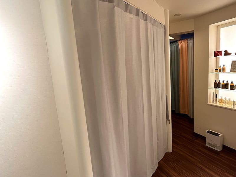 ご依頼主様とオンライン(Zoom)にて打ち合わせ。事前にWEBカタログを共有させて頂く。オンラインでの打ち合わせでは、生地サンプルを画面上で確認して頂きました。現地での採寸は、遠方の為、キーボックスを使用し、弊社のみ、納品も立ち合いなしで行う。入退室や納品終了時にはLINEを使用し、ご依頼主様に写真等で確認して頂きました。